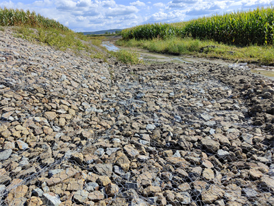 岸坡治理是我國一項造具有長遠規(guī)劃的基礎(chǔ)建設(shè),格賓網(wǎng)箱網(wǎng)面是由鍍高爾凡等防腐處理的低碳鋼絲制成的六邊形雙絞網(wǎng),使用壽命超過50年。格賓網(wǎng)箱護岸結(jié)構(gòu)采用鋼絲籠與填料組合,整體呈柔性,具有一定程度的變形能力,可在各種地基基礎(chǔ)上使用,非常適合河道護岸。 格賓網(wǎng)箱護岸