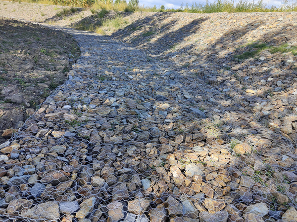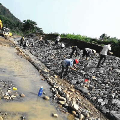 河道護堤格賓石籠網(wǎng)是常使用在河道治理中的一種機編鋼絲網(wǎng),它采用雙絞合編織工藝把鋼絲兩兩交替擰編在一起形成。格賓石籠網(wǎng)的作用便是河道護坡、護腳、護底,承擔著保護河堤的任務。