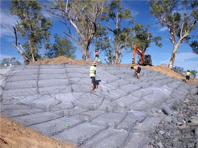 格賓石籠網(wǎng)是水利工程中使用的一種生態(tài)格網(wǎng),把格賓石籠網(wǎng)制作成墊狀結構應用于邊坡防護的這種結構被稱為格賓石籠護坡。格賓石籠網(wǎng)是一種由高耐腐蝕性的原材料鋼絲編制形成的,被制成墊狀結構后進行貼坡擺放,然后再通過填石進行充實加固。