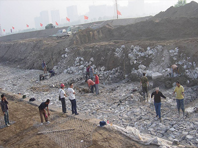 格賓網(wǎng)箱常被用于河道護(hù)堤,具體保護(hù)河道邊坡防治、河道河床護(hù)底、河道護(hù)堤、河道護(hù)腳、堤壩加固,除此之外,還被用于水庫治理、港口護(hù)岸、防汛防洪、鐵路公路防護(hù)、泥石流防治等等。本文主要講述格賓網(wǎng)箱護(hù)堤的組裝施工。