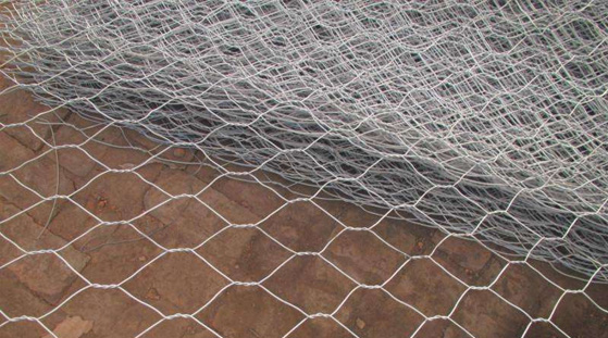 格賓護(hù)坡是采用六邊形雙絞合鋼絲網(wǎng)制作而成的一種網(wǎng)墊結(jié)構(gòu),網(wǎng)面一般由鍍高爾凡(鋅-鋁-合金鍍層)、厚熱鍍鋅、普通熱鍍鋅、高耐磨覆塑層的低碳鋼絲編織而成。雙隔板格賓護(hù)坡是底板、邊板、側(cè)板和隔板采用一張網(wǎng)片折疊而成。