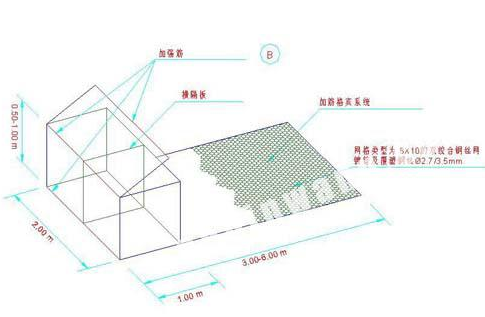 加筋格賓網(wǎng)是指在格賓網(wǎng)的底部拖出一條與格賓網(wǎng)等寬的網(wǎng)片,而且,這個(gè)網(wǎng)片與格賓網(wǎng)的底部是一個(gè)整體,這樣的結(jié)構(gòu)我們稱為加筋格賓擋墻。那么,這個(gè)多出來的網(wǎng)片又有著怎么樣的作用呢?