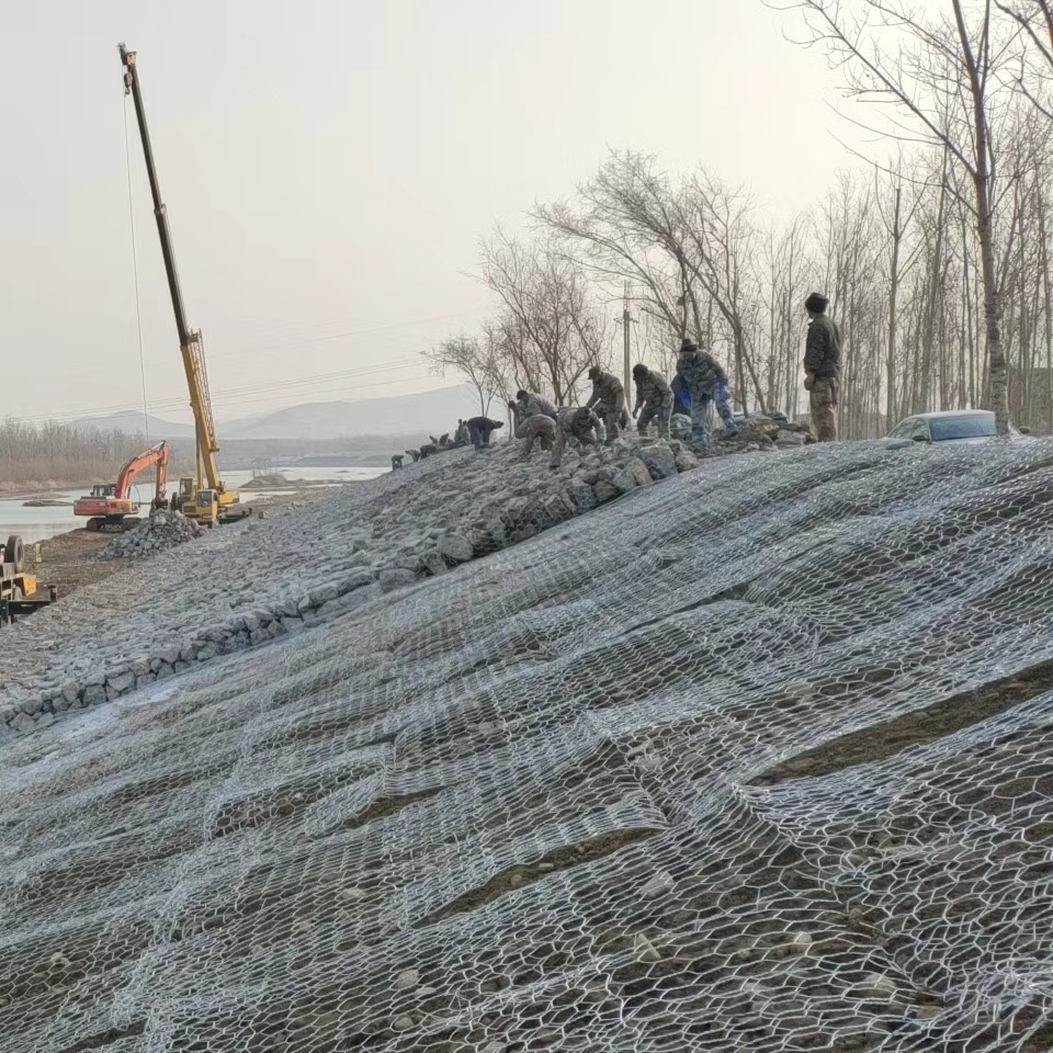 賓格籠是由低碳高鍍鋅鋼絲編織成雙絞合六邊形網(wǎng)目的網(wǎng)片,根據(jù)工程設(shè)計(jì)要求組裝成蜂巢網(wǎng)箱,箱體內(nèi)填滿塊石,用在堤防、河岸、路基的防護(hù)工程中,賓格籠是一種柔性結(jié)構(gòu)體,對(duì)不均勻沉陷有自我調(diào)整的特點(diǎn),較好地實(shí)現(xiàn)了工程結(jié)構(gòu)與生態(tài)環(huán)境的有機(jī)結(jié)合,多適用于高流速、腐蝕嚴(yán)重、岸坡崩漏垮塌的河道。