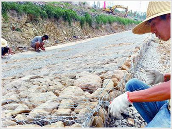 石籠網(wǎng)箱石籠網(wǎng)常見(jiàn)的一種就是石籠網(wǎng)箱又稱格賓網(wǎng)箱,就是把機(jī)械編織而成的六角網(wǎng)通過(guò)人工組裝成箱體形狀,內(nèi)部裝填塊石等填裝物。根據(jù)鍍層的不同,有鍍鋅石籠網(wǎng)箱、鍍高爾凡石籠網(wǎng)箱、覆塑石籠網(wǎng)箱幾種,它由石籠網(wǎng)廠家加工好并且壓縮打成包發(fā)往施工現(xiàn)場(chǎng),進(jìn)入工地再進(jìn)行組裝。